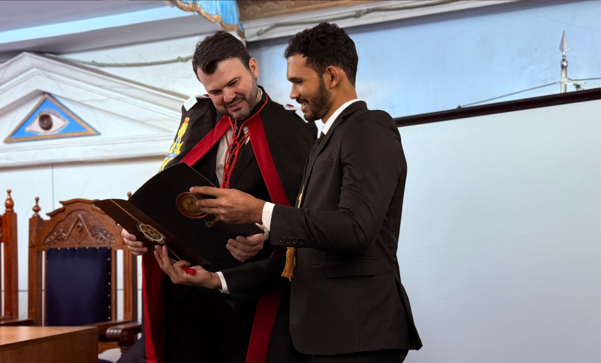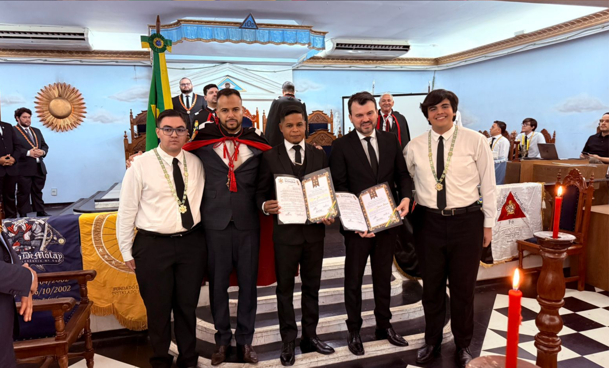Na ocasião, foram investidos os irmãos Fábio Oliveira Paiva, Past Grande Mestre Distrital e Frederico Pereira Dunice Brito, 1º Mestre Conselheiro Distrital, em reconhecimento às suas trajetórias, à dedicação contínua e aos relevantes serviços prestados à Ordem DeMolay. A honraria simboliza o reconhecimento institucional àqueles que se tornaram referências de compromisso, liderança e exemplo para as futuras gerações de DeMolays.